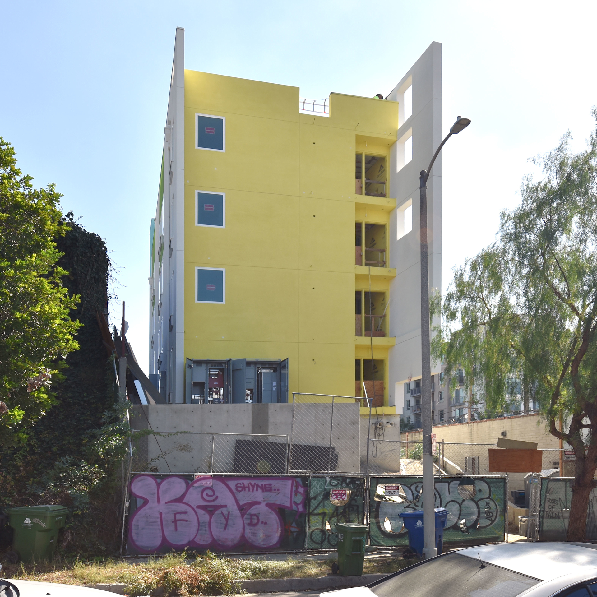 The project features a furnished rooftop deck, secure gated entries, and long-term bicycle parking. Each unit is fully furnished and equipped with high-efficiency fixtures and appliances. A live-in property manager and on-site social services office provide resident support and foster connections with the broader Los Angeles community.